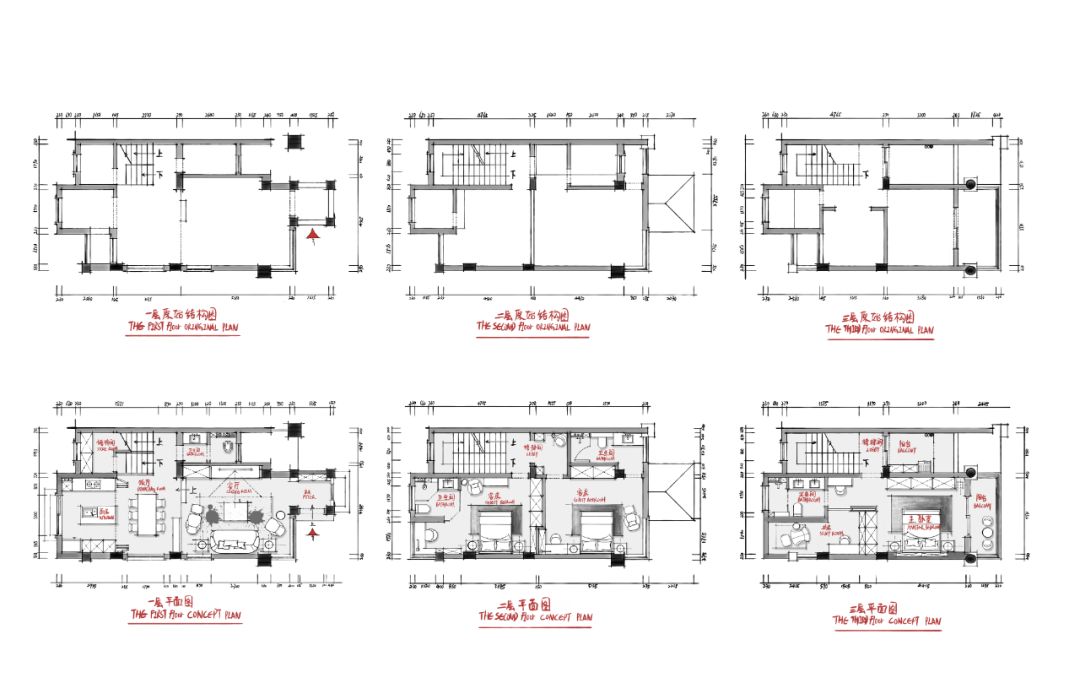 别墅内部根据使用频率和需求各自划分好彼此的位置:一层是起居室公共区;二层是客房;三层是主卧私人区。