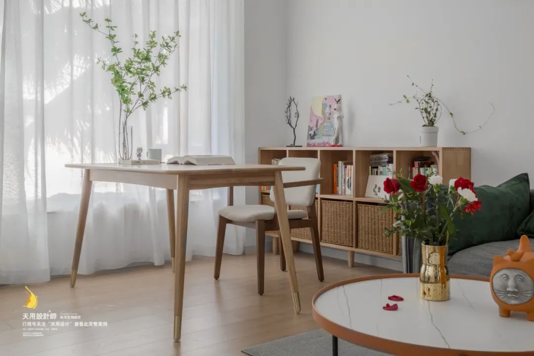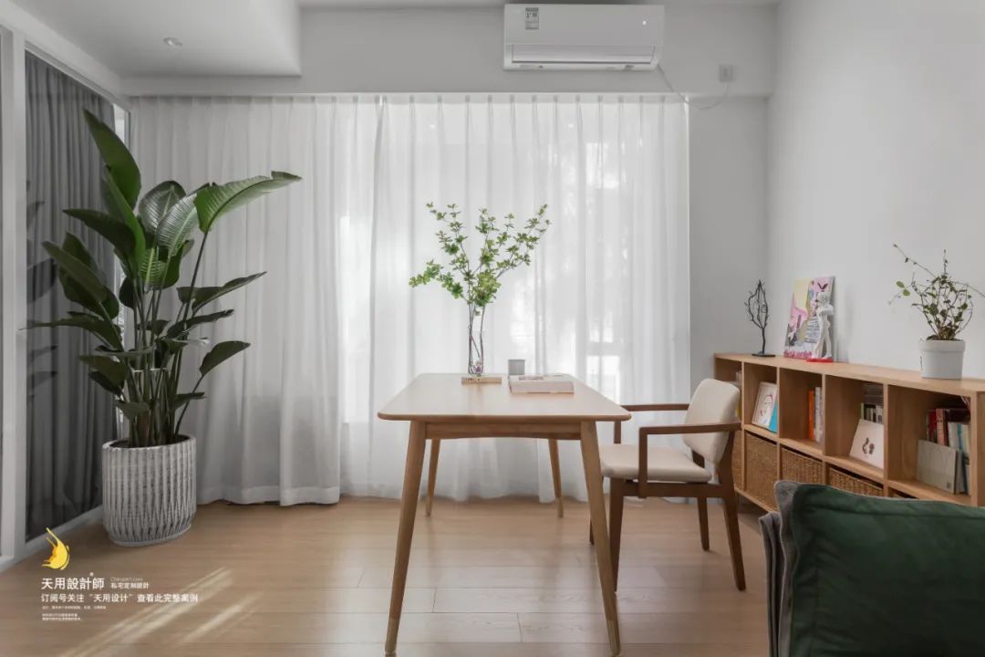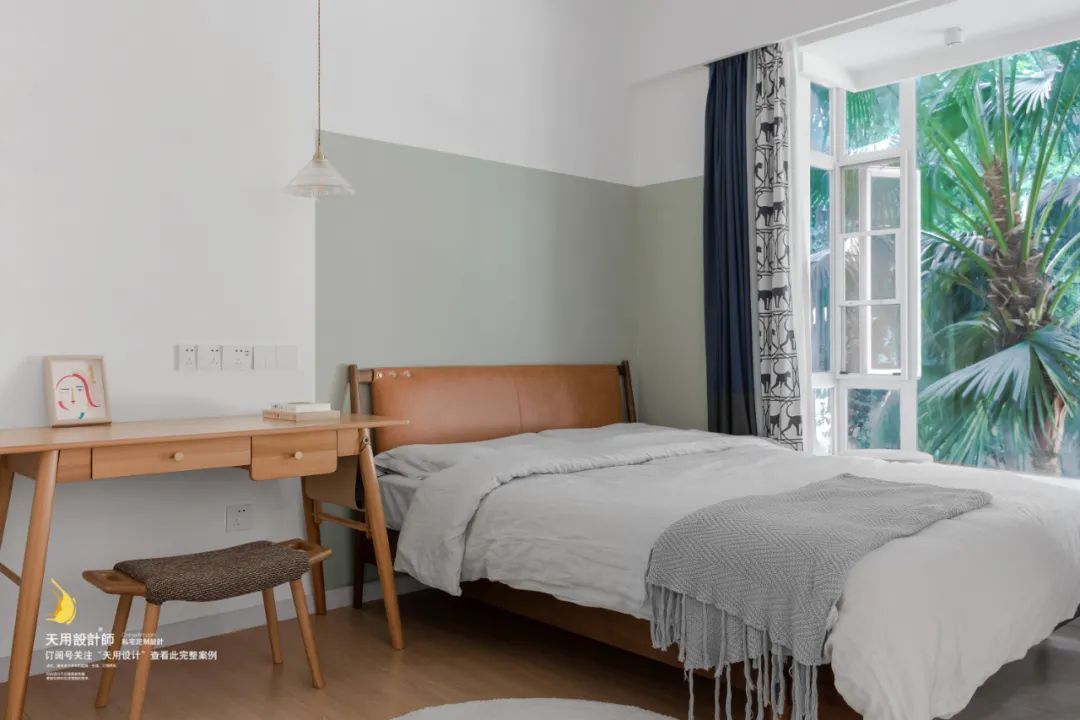 二楼窗外是一年四季常绿的树顶,打开飘窗把外景引入室内,满眼绿意郁郁葱葱,心情都变得很好了呢~