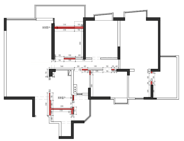 平面格局中,改动最大的地方是厨房。大刀阔斧地打拆两面墙体,根据需求做凹凸位,便于后期嵌入柜体。开放式厨房+中岛的设计,扩大厨房的空间感及视觉效果,加强与客餐厅的联系,形成通透开放的LKD空间。