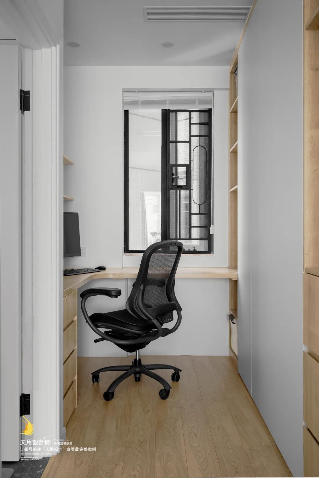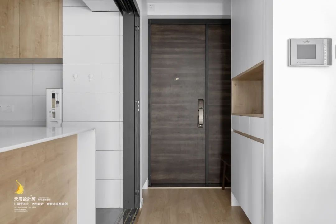 其他地方的改动,目的是一是制造凹位嵌入柜体,隐藏体量从而降低厚重感;二是充分利用边角空间,增加储物空间。